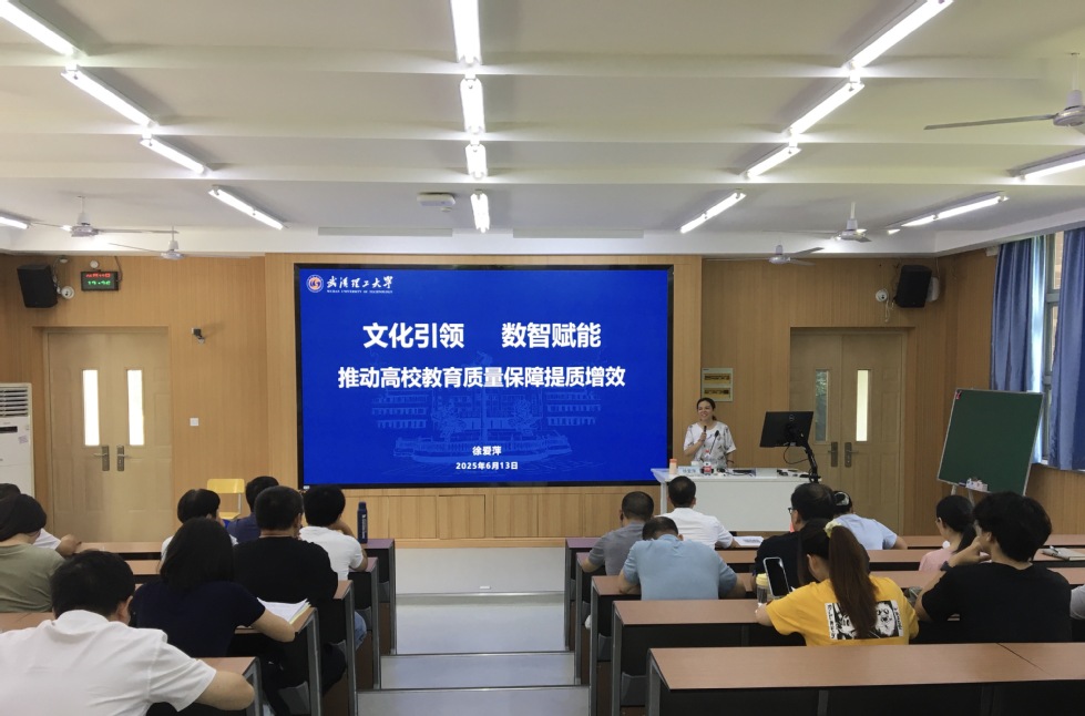为进一步推动教育教学审核评估整改工作落实落细,创设培育学校教育质量文化,6月13日下午,教学质量监控与评估中心特邀武汉理工大学本科生院副院长徐爱萍教授,作题为“文化引领,数智赋能:推动高校教育质量保障提质增效”的主题讲座。二级学院(教学单位)教学副院长、系主任、教务办主任,质评中心、教务处、校院二级督导组全体人员参加。质评中心副主任周兴平主持。